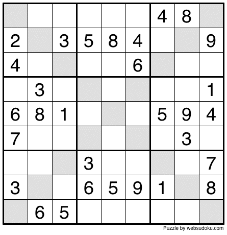 Instructions : Remplissez Sudoku-X comme un Sudoku classique, mais sans répétition dans les diagonales ombrées.